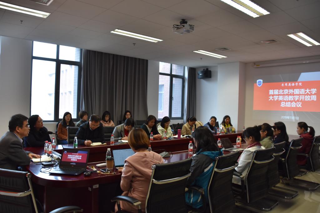11月1日下午,pp电子游戏平台官网在西校区国际大厦1016会议室召开“首届北京外国语大学大学英语教学开放课堂暨研讨会”总结会。教务处处长李莉文、外研社高等英语教育出版分社社长助理冯涛、pp电子游戏平台官网常务副院长蔡鸿、副院长仵胜奇及学院参加开放课堂的教师代表共计23人参加了会议。会议由蔡鸿主持。
