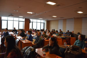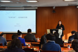 1月10日上午9:00,pp电子游戏平台官网2018-2019学年第一学期期末大会在西校区国际大厦317室召开。常务副院长蔡鸿,副院长彭萍、仵胜奇,院长助理廖鸿婧,办公室主任匡琳琳,以及包括外籍教师在内的教职员工共52 人参加此次大会。大会特别邀请了学校教务处处长、学校教学督导专家李莉文出席。大会共有三项内容: 李莉文传达教育部关于本科教育系列文件精神; 蔡鸿做本学期工作总结; 学院对本学期做出突出成绩的老师进行表彰。大会由廖鸿婧主持。