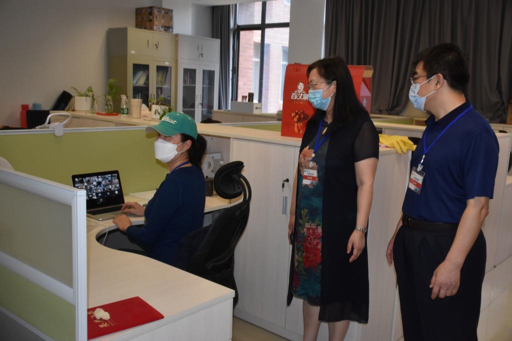 6月22-23日,pp电子游戏平台官网举行全校期末大学英语在线闭卷考试。教务处处长李莉文莅临pp电子巡考。pp电子游戏平台官网院长蔡鸿和教学副院长蒋岳春陪同检查各个在线考场准备和考试情况。