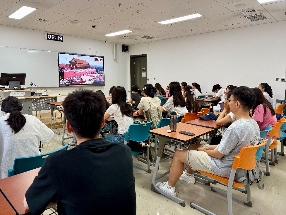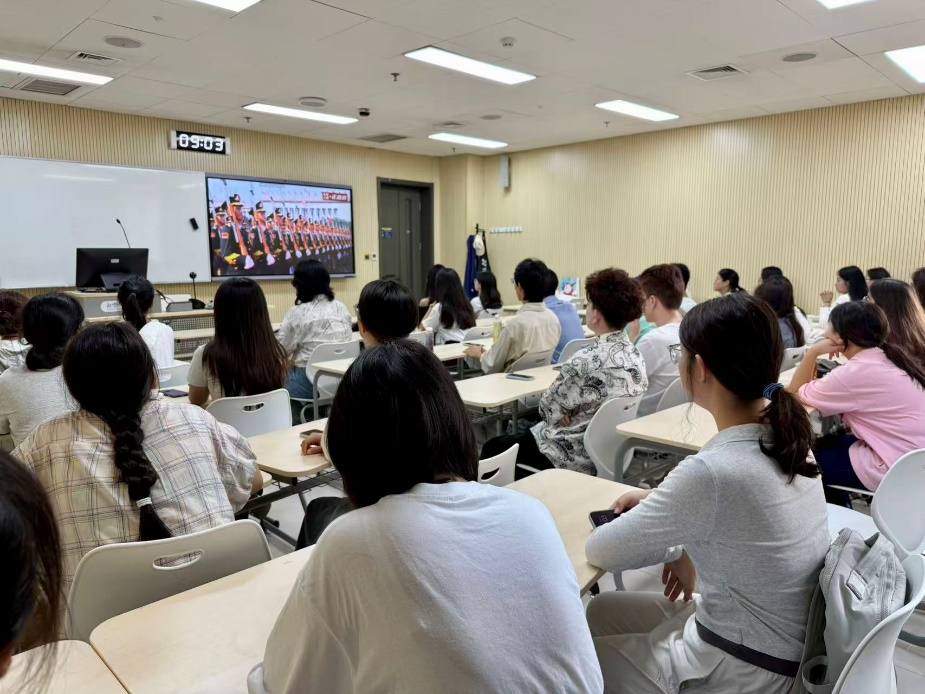 2025年9月3日上午,纪念中国人民抗日战争暨世界反法西斯战争胜利80周年大会在北京天安门广场隆重举行。pp电子游戏平台官网在国际大厦427室、510室组织2025级全体新生集中观看“纪念中国人民抗日战争暨世界反法西斯战争胜利80周年大会”直播。