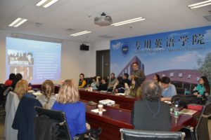 Mok教授在讲座中深入剖析了美国第45任总统特朗普的成长背景、竞选策略、执政前景,以及美国国内及对外政策。Mok教授的讲座内容丰富、视角独特,使与会者对于美国的政治体制的特点和运作机制有了更加深刻的了解。一个半小时的讲座结束后,进入30分钟的问答与讨论环节。与会教师就中美关系的前景、特朗普政府的特点、美国中下阶层民众对美国政治制度影响等相关问题进行了热烈的讨论。讲座在热烈的掌声中结束。