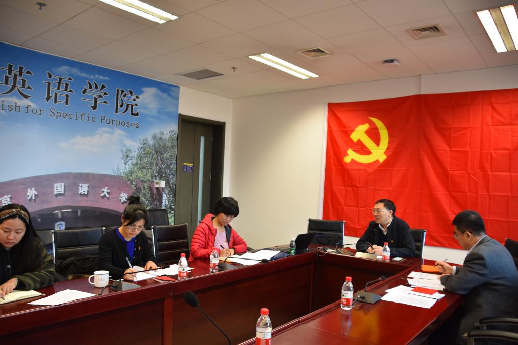 根据中央《关于在“不忘初心、牢记使命”主题教育中对照党章党规找差距的工作方案》和北京外国语大学《“不忘初心、牢记使命”主题教育实施方案》的安排,围绕“守初心、担使命,找差距、抓落实”的总要求,pp电子游戏平台官网于11月8日下午3点在北外国际大厦1016会议室举行了学院领导班子对照党章党规找差距专题会。学校主题教育领导小组办公室评估督导组成员肖红出席会议进行检查督导工作。学院直属党支部书记仵胜奇、副书记蔡鸿和支部委员匡琳琳和蒋岳春出席了会议。