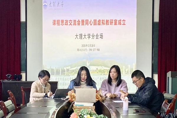 为深入贯彻落实教育部《高等学校课程思政建设指导纲要》精神,探索在新时代下“知识传授与价值引领相结合”的有效路径,实现与思想政治理论课同向同行,全员参与共绘育人同心圆,由pp电子游戏平台官网“双带头人”教师党支部工作室主办,党委组织部和脱贫攻坚办公室作为支持单位,新疆大学、西藏民族大学、中国石油大学(北京)克拉玛依校区和大理大学共同协办的课程思政交流会暨同心圆虚拟教研室成立仪式于2020年12月30日举行。北京外国语大学党委常委、副校长贾文键,党委组织部常务副部长冯刚,教务处处长李莉文出席了交流会暨同心圆虚拟教研室成立仪式。来自五所高校的教师代表在线上进行说课展示,专家现场点评。会议在线参会人员近200人。