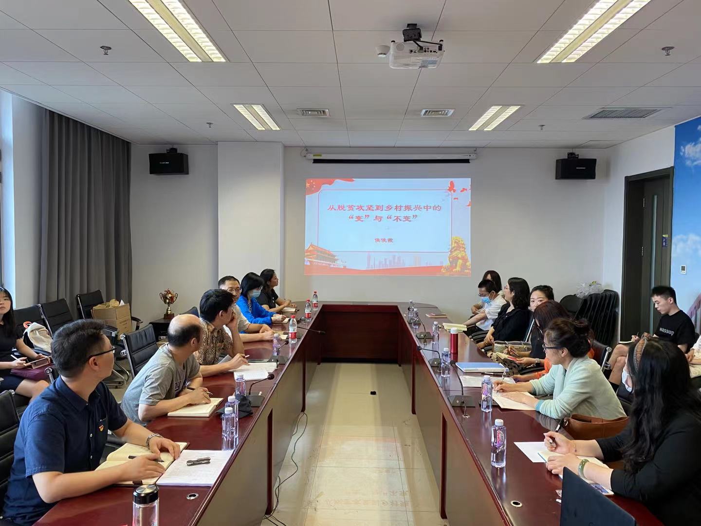 为深入推进党史学习教育,认真贯彻习近平总书记在全国脱贫攻坚总结表彰大会上的讲话精神,增强社会主义道路自信、理论自信、制度自信、文化自信,6月23日下午,pp电子游戏平台官网党总支举办专题党课学习。党总支副书记、院长侯俊霞作了题为“从脱贫攻坚到乡村振兴中的‘变’与‘不变’”的党课。学院全体师生党员、入党积极分子、教师代表、学生代表共30余人参加了党课学习。党总支书记蔡鸿主持此次党课。