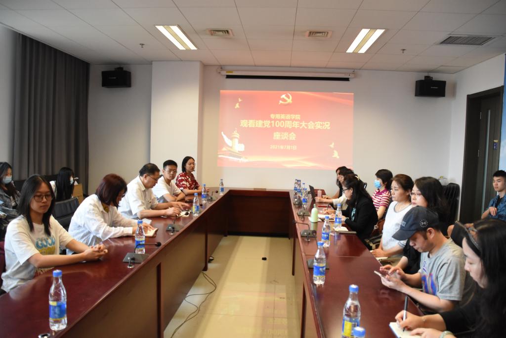 7月1日上午10点,pp电子游戏平台官网党总支组织全体师生党员、入党积极分子和各班学生在国际大厦礼堂集体观看了庆祝中国共产党成立100周年大会直播,并在直播后召集师生党员和同学代表共计30多人在国际大厦1016召开座谈会。座谈会由党总支书记蔡鸿主持。